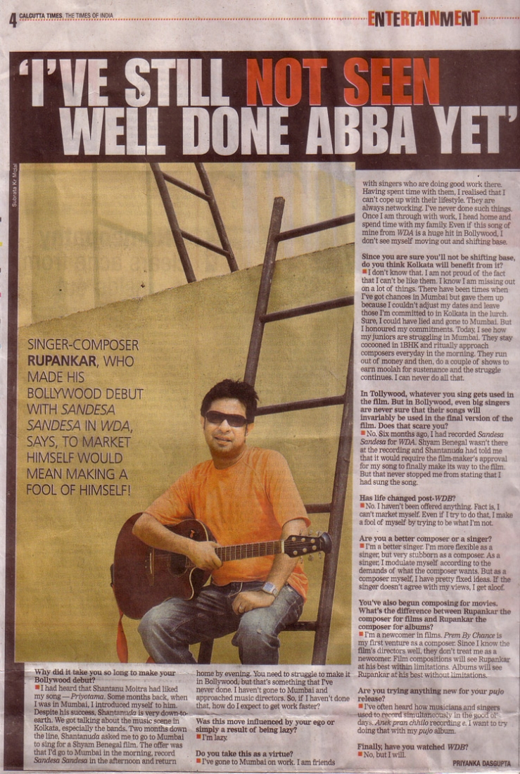 ‘Well done abba’ a film by Shyam Benegal music director Shantanu Moitra lyrics swanand Kirkire duet song with Shreya Ghosal titled ‘Sandesha’